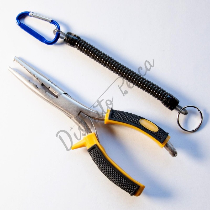 Alicate fabricado en acero inoxidable con unas medidas de 180 mm. Incluye cordón extensible con gancho.