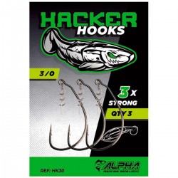 Los anzuelos Hacker son anzuelos especialmente diseñados por Moisés Pastor de Advanced Fishing junto con Alpha Custom Lures, para la pesca con swimbaits blandos, en especial para el famoso vinilo Hacker.