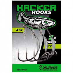 Los anzuelos Hacker son anzuelos especialmente diseñados por Moisés Pastor de Advanced Fishing junto con Alpha Custom Lures, para la pesca con swimbaits blandos, en especial para el famoso vinilo Hacker.