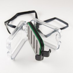Caja doble de plástico con tapas transparentes, estanca, con 2 caras de foam ranurado.