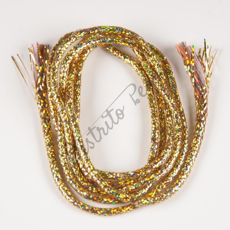 Idéntico al mylar cord pero en tonos holográficos. Tamaño pequeño. Diámetro de 2 mm aproximadamente.