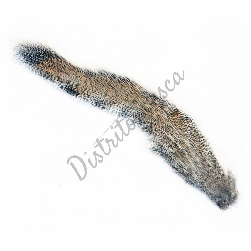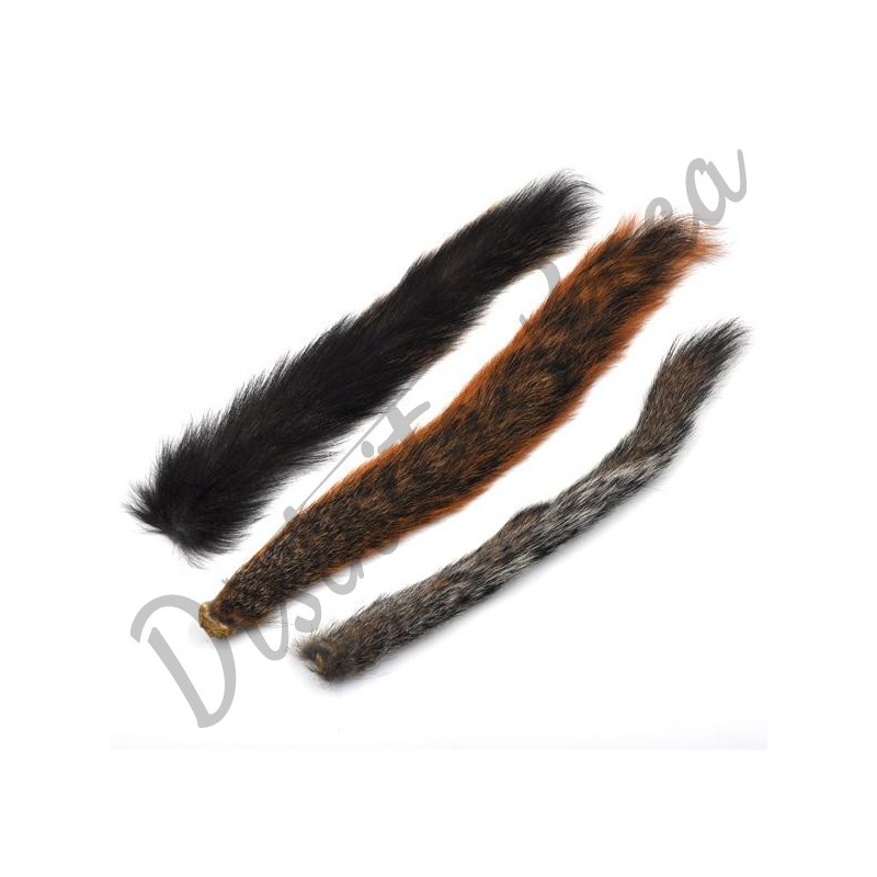 Colas enteras de ardilla gris naturales o teñidas manteniendo el barrado natural. Para el montaje de streamers e innumerables moscas de salmón y mar.
