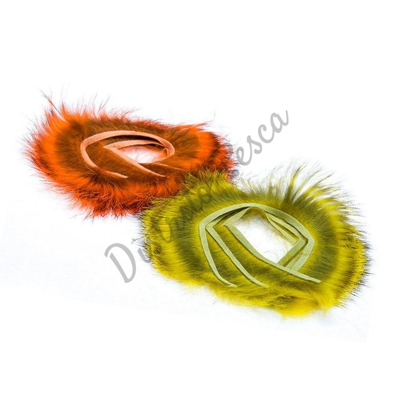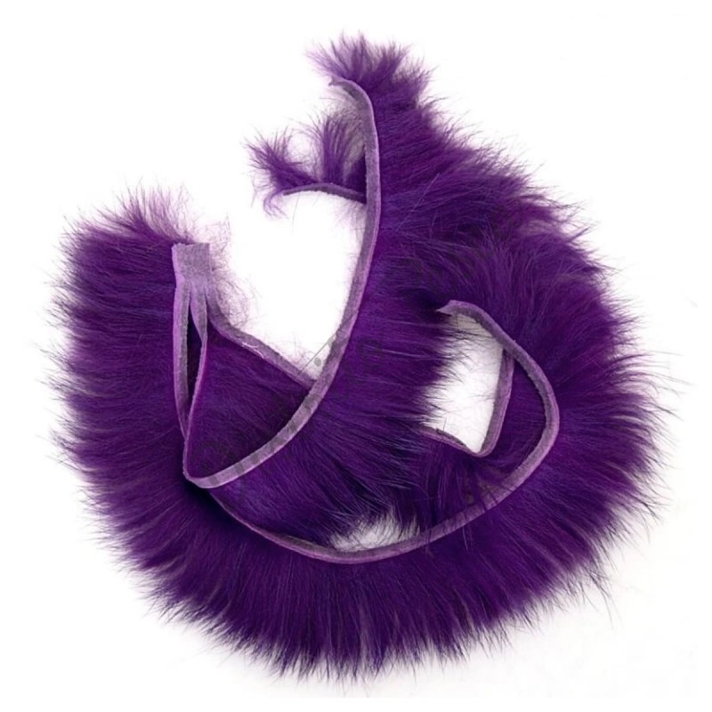 Tiras de piel de conejo de la marca Hends. Se diferencian de las tradicionales tiras de conejo en que estas están cortadas en dirección perpendicular al crecimiento del pelo, lo que las hace excelentes para hacer cabezas y cuerpos voluminosos de streamers.