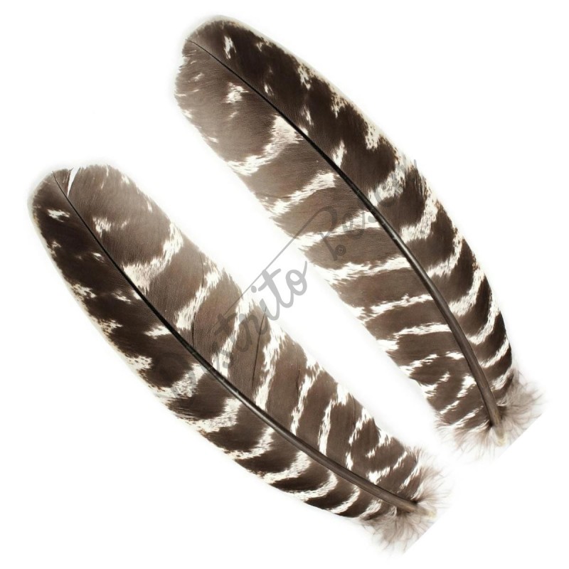 Par de plumas con patrón barrado natural. Ideales para moscas de salmón, saltamontes, muddlers y moscas ahogadas.