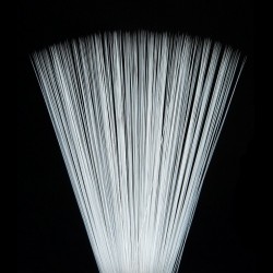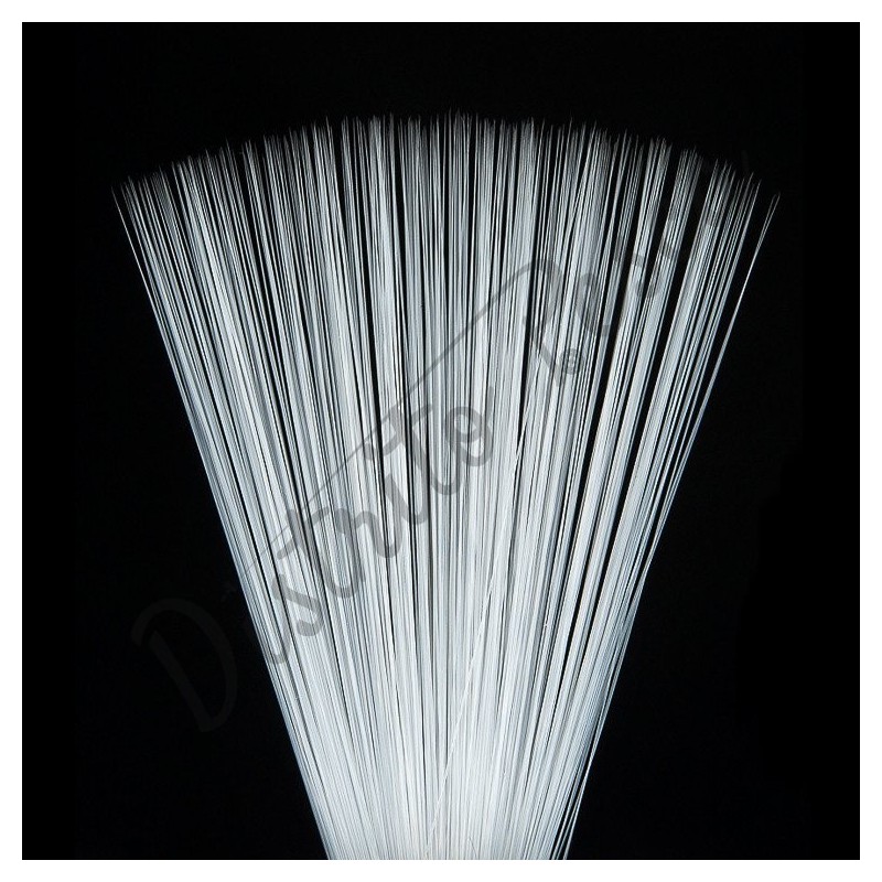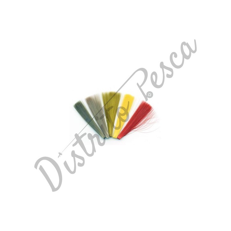 Se trata de un material sintético muy fino (tanto como las fibras de las plumas de gallo de León), con punta cónica.