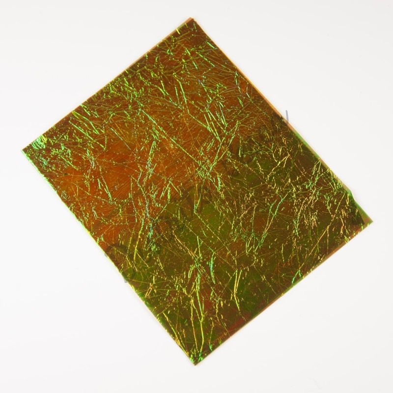 Lámina muy fina con efecto iridiscente para hacer anillado, collares, sacos alares, cuerpos, puntas y muchas otras partes de moscas artificiales.