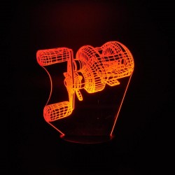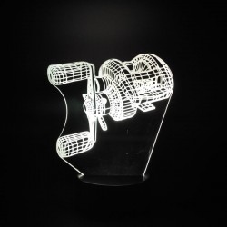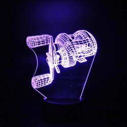 Consta de una base con LEDs y una placa de acrílico. Los LEDs se pueden cambiar de color desde la base mediante un botón táctil o mediante el mando a distancia que viene incluido. Se puede dejar un color fijo, o que vaya cambiando secuencialmente. Se puede ajustar tambien la intensidad.